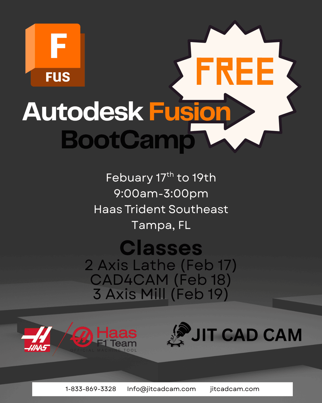 Don't miss this opportunity to gain hands-on experience with Autodesk Fusion! Haas Trident Southeast is hosting a FREE Fusion Boot Camp event from Febuary 17th to 19th, covering essential skills in Milling, Turning, and CAD. Whether you're a beginner or looking to enhance your existing knowledge, this comprehensive training will provide you with practical insights and techniques to optimize your manufacturing processes. Learn from industry professionals and take your projects to the next level. Secure your spot now!